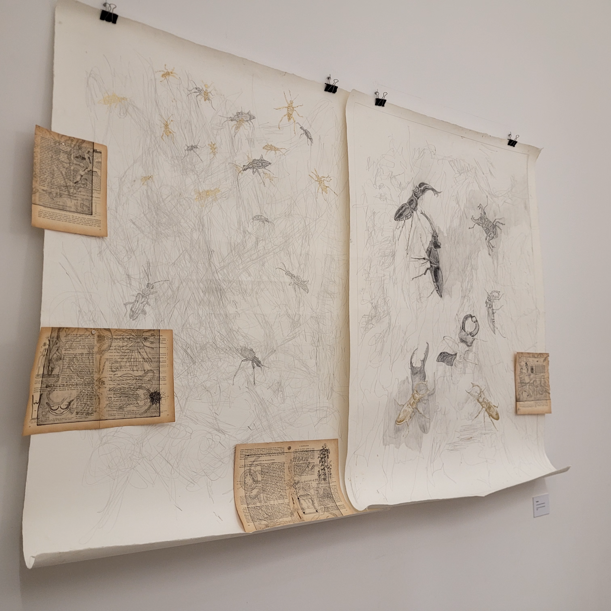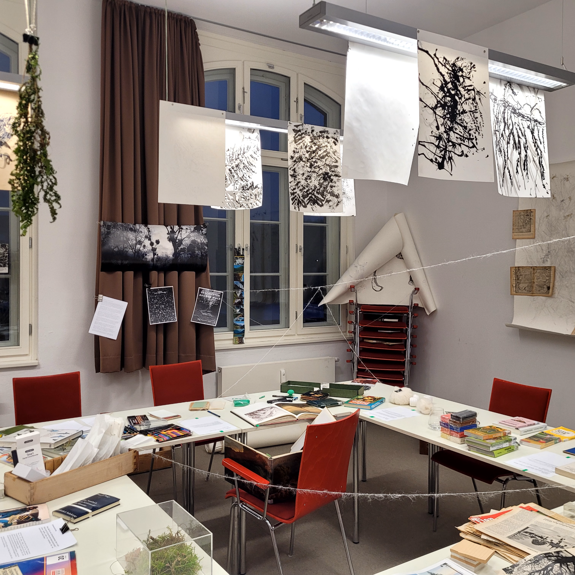 Ich expermentiere mit meinem Konzept des "Raumromans". Mit einem Setting, das aus meiner Recherche und künstlerische Forschung zum Thema besteht, lade ich die Teilnehmer:innen ein, mit mir an einem Roman zu arbeiten. Unterschiedliche Kapitel mit Handlungsanweisungen geben Anlass zum Mitschreiben und Mitzeichnen.