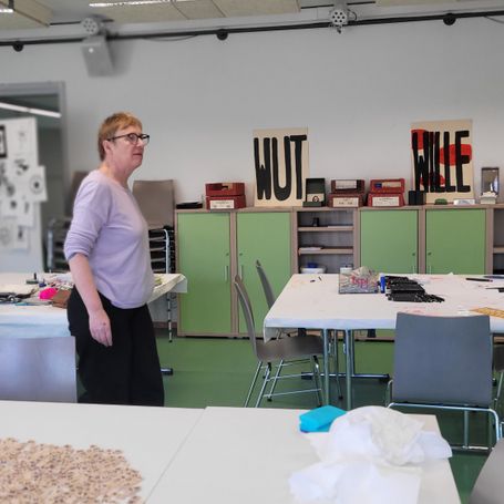 Im Nachbarschaftszentrum Oskar-Drewitz trafen sich eine zweite und eine vierte Klasse zum Drucken und Positionieren. Die Fragen im Raum waren einfach und zugleich riesig: Wofür gehst du auf die Straße? Wogegen bist du?