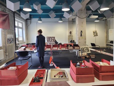 Der Raum ist bewusst offen angelegt: Teilnehmende sind eingeladen mitzugestalten, neue Module zu entwerfen und eigene Erlebnisse, Werkzeuge und Taktiken des Protests einzubringen. So entsteht fortlaufend ein wachsender Wissens- und Materialpool – eine Plattform, auf der widerständige Kunst erprobt, diskutiert und weiterentwickelt wird.